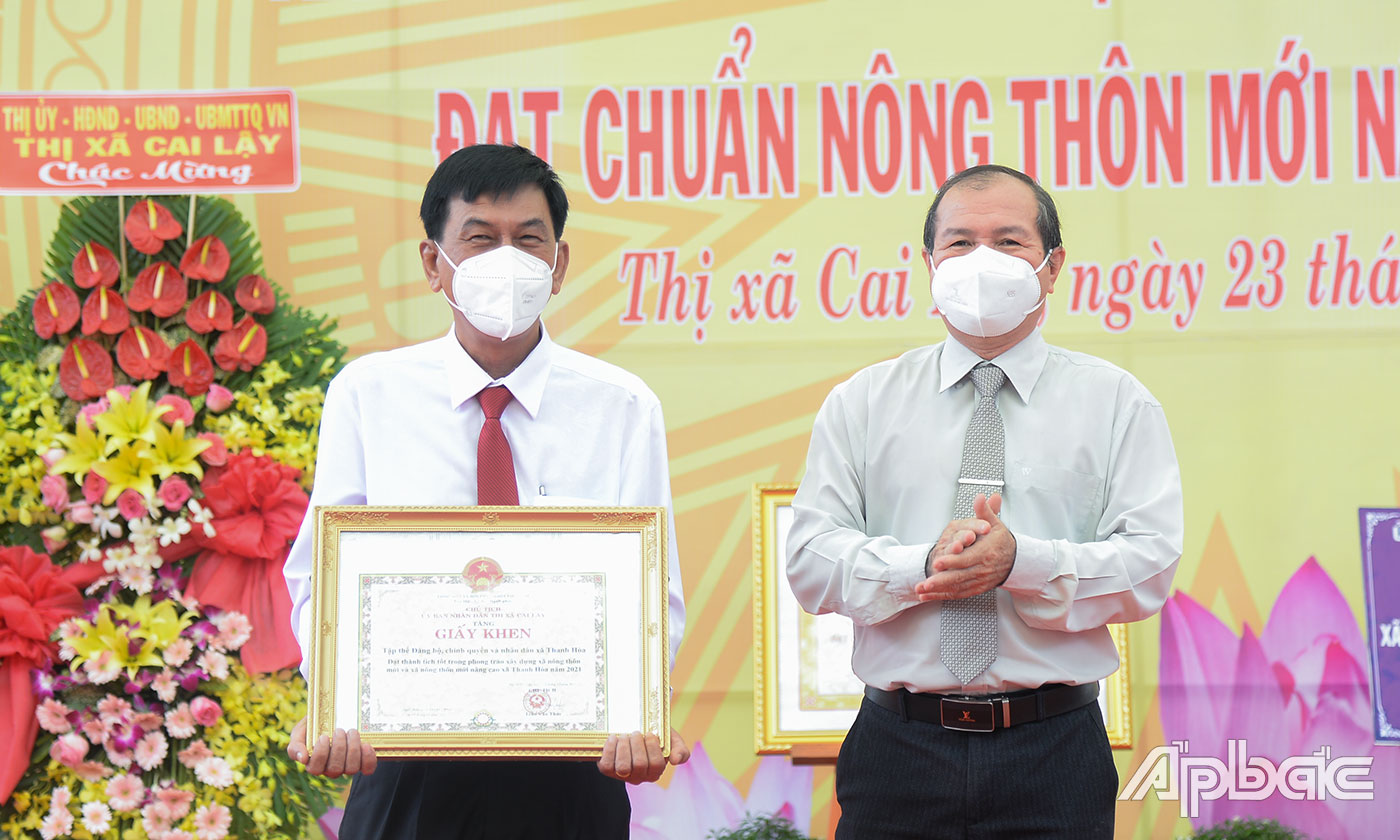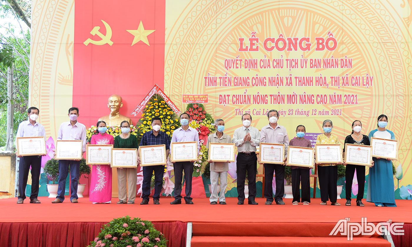 Dịp này, UBND TX. Cai Lậy tặng Giấy khen cho các tập thể, cá nhân có thành tích xuất sắc trong phong trào xây dựng NTM nâng cao của xã.
