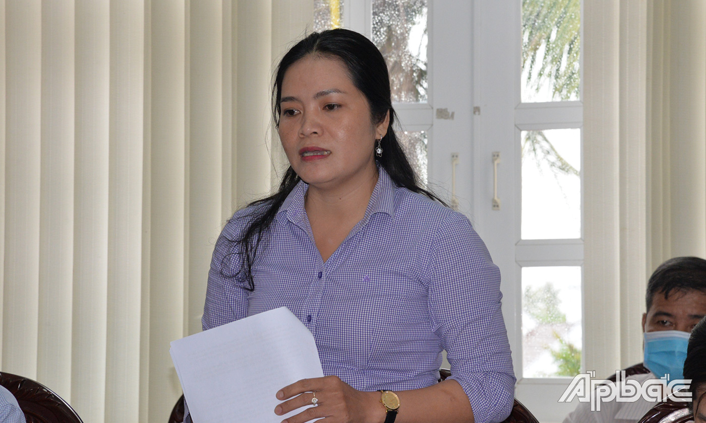 | Thành viên Đoàn giám sát và lãnh đạo sở, ngành tỉnh phát biểu ý kiến tại buổi làm việc với UBND huyện Gò Công Đông. |
