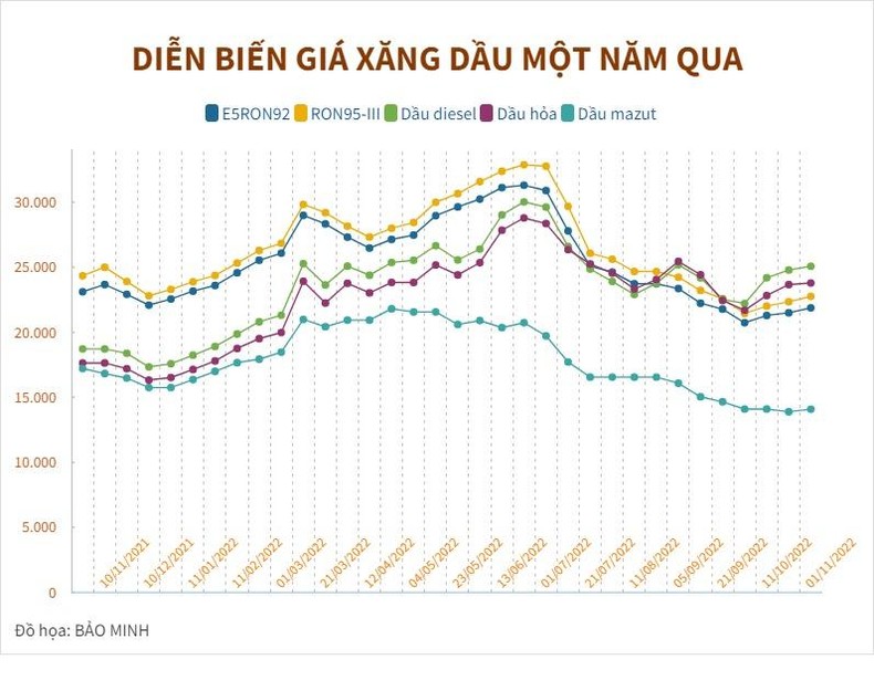 Từ 15 giờ ngày 1/11, Liên bộ Công thương-Tài chính tiếp tục thực hiện điều chỉnh giá xăng dầu theo chu kỳ. Theo đó, trong kỳ điều chỉnh lần này, giá các mặt hàng xăng dầu đồng loạt tăng.