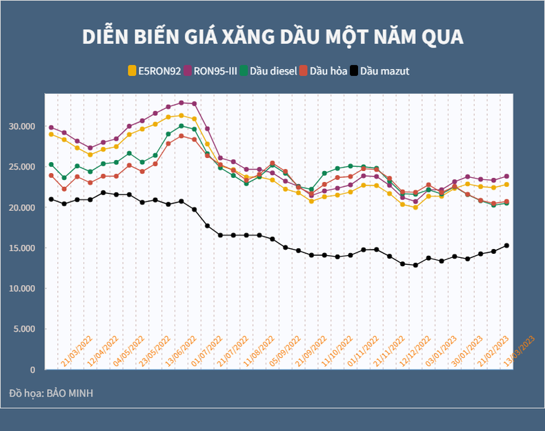 Việc trích lập, không chi sử dụng Quỹ Bình ổn giá xăng dầu đối với các mặt hàng xăng dầu: áp dụng từ 15 giờ ngày 13-3-2023.