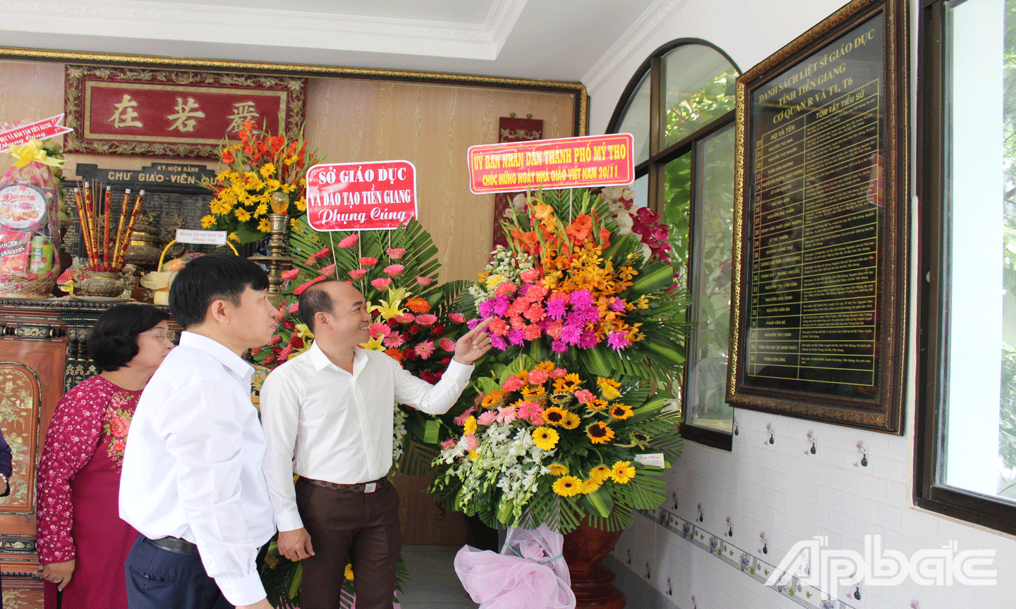 Tại Nhà tiền vãng, trong không khí nghiêm trang, thành kính, lãnh đạo ngành Giáo dục đã dâng lẵng hoa, thắp hương tưởng niệm các bậc Ân sư tiền vãng, các cán bộ nhà giáo liệt sĩ của tỉnh Tiền Giang qua các thời kỳ.
