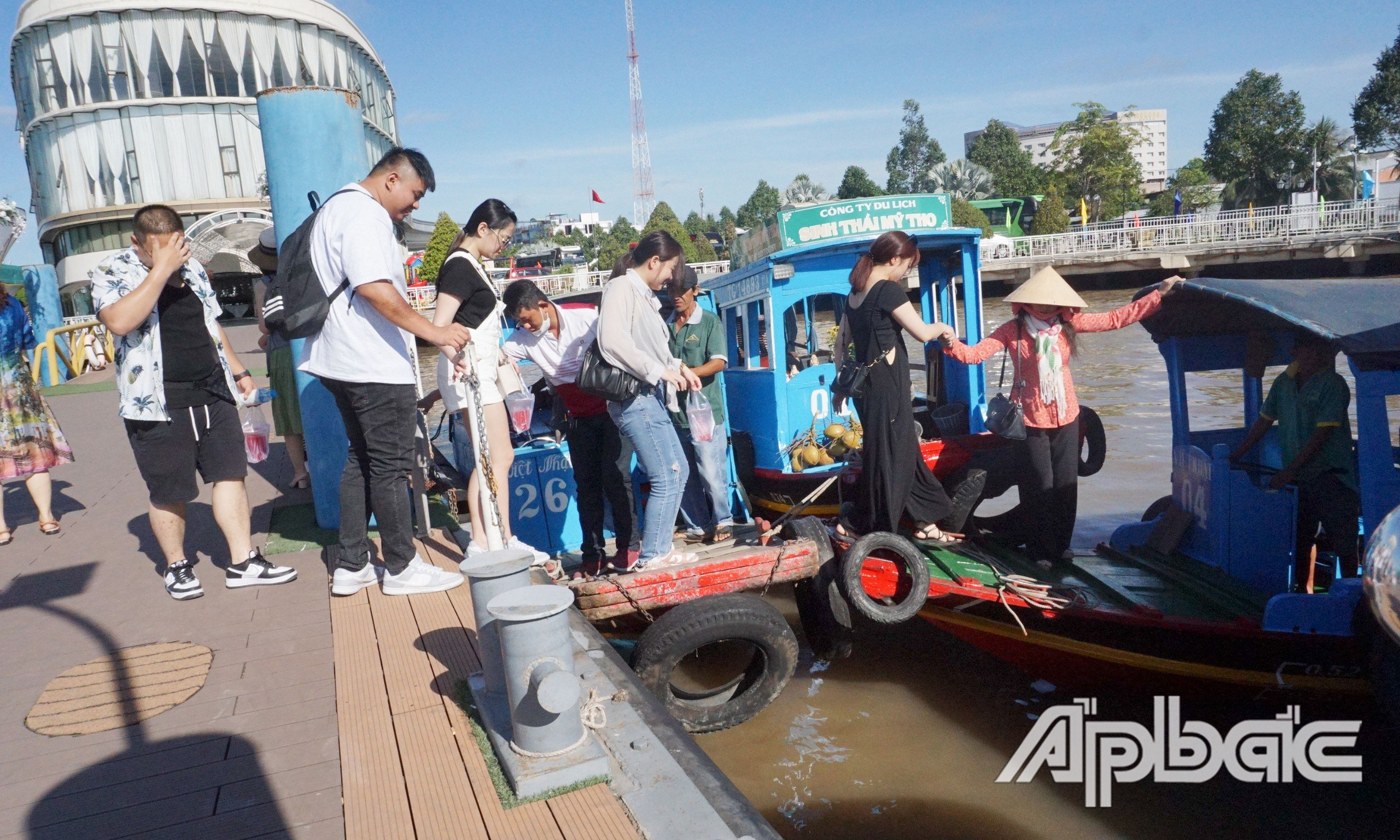 | Khách du lịch đến cù lao Thới Sơn qua Cảng Du thuyền Mỹ Tho. |