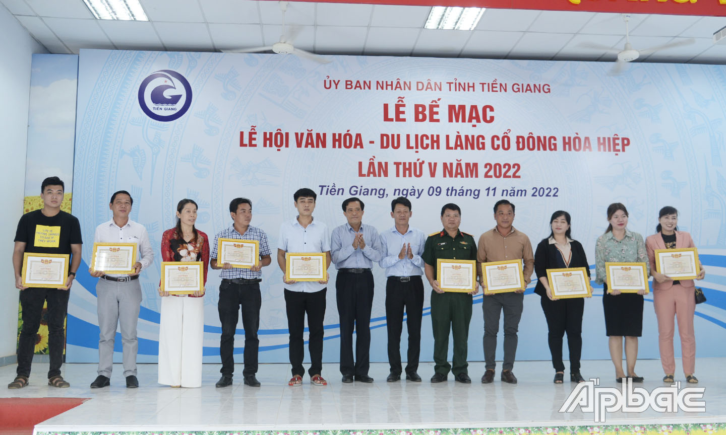 (ABO) Ngày 9-11, UBND tỉnh Tiền Giang tổ chức Lễ bế mạc Lễ hội Văn hóa - Du lịch Làng cổ Đông Hòa Hiệp lần thứ V năm 2022 (gọi tắt là Lễ hội). Tham dự buổi lễ có đồng chí Nguyễn Thành Diệu, Phó Chủ tịch UBND tỉnh, Trưởng Ban Tổ chức Lễ hội.