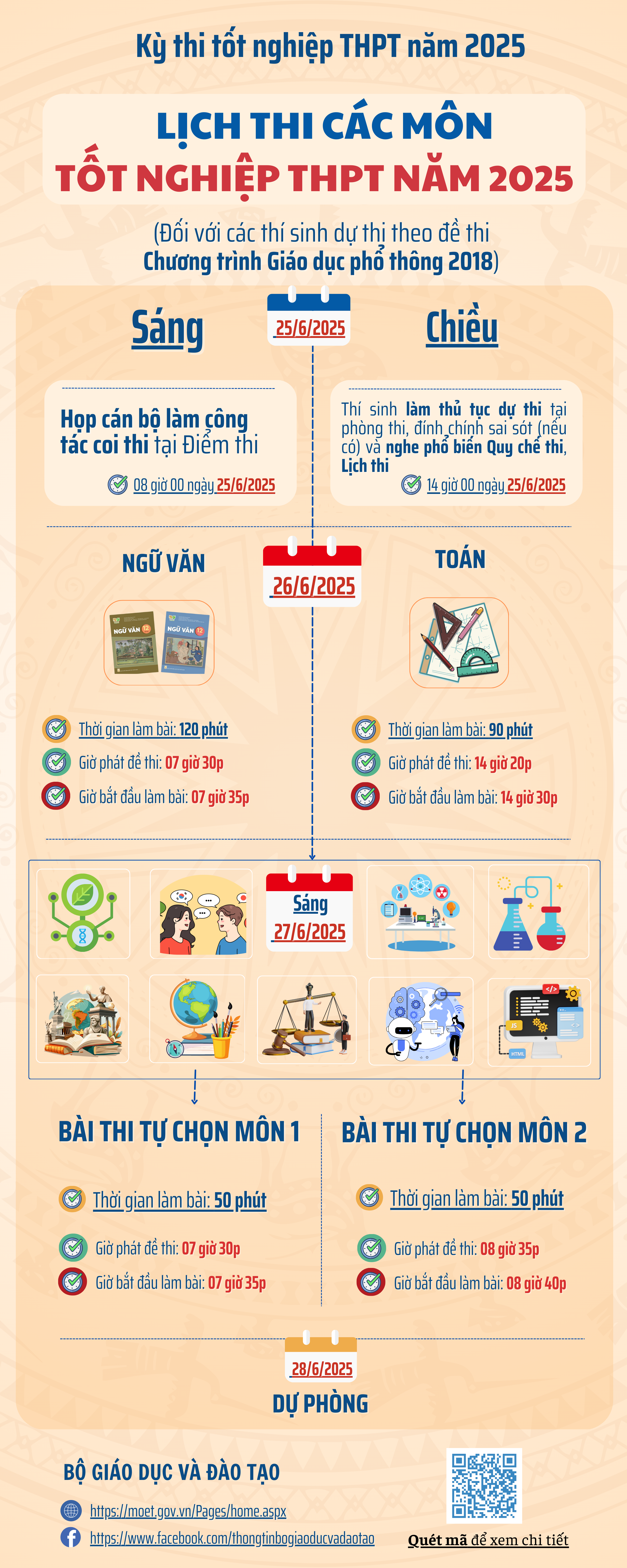LỊCH THI CÁC MÔN TỐT NGHIỆP THPT NĂM 2025