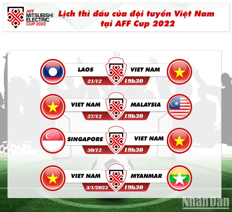 Lịch thi đấu của đội tuyển Việt Nam tại AFF Mitsubishi Electric Cup 2022