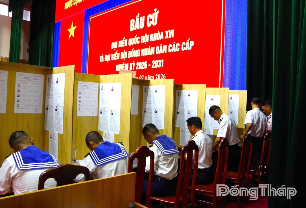 Theo đó, sáng 26-2, tại xã Long Sơn, TP. Hồ Chí Minh, Bộ Tư lệnh Vùng 2 Hải quân phối hợp với Ủy ban bầu cử xã Long Sơn tổ chức bầu cử sớm tại bến cho các lực lượng đi thực hiện nhiệm vụ trên biển và tiễn 2 đoàn công tác đi trên tàu Trường Sa 04 và Trường Sa 21 thuộc Vùng 2 Hải quân để thực hiện nhiệm vụ bầu cử sớm cho các Nhà giàn DK1, tàu trực và các ngư dân ta đang khai thác thủy hải sản trên biển.