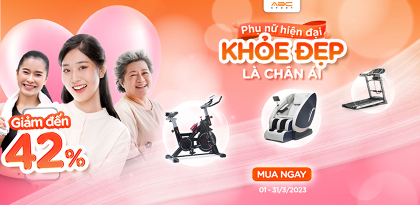 Chương trình khuyến mãi “Phụ nữ hiện đại - Khỏe đẹp là chân ái” diễn ra từ ngày 1 đến 31-3-2023 ưu đãi lên tới 42%. Chương trình diễn ra nhằm mục đích muốn tôn vinh những người phụ nữ. Hơn hết, trong những năm gần gần đây, Tập đoàn thể thao ABCSport cũng luôn đồng hành cùng những người phụ nữ ở trong thời đại mới bởi chất lượng ưu việt, giá cả hợp lý và dịch vụ bảo hành trọn đời.