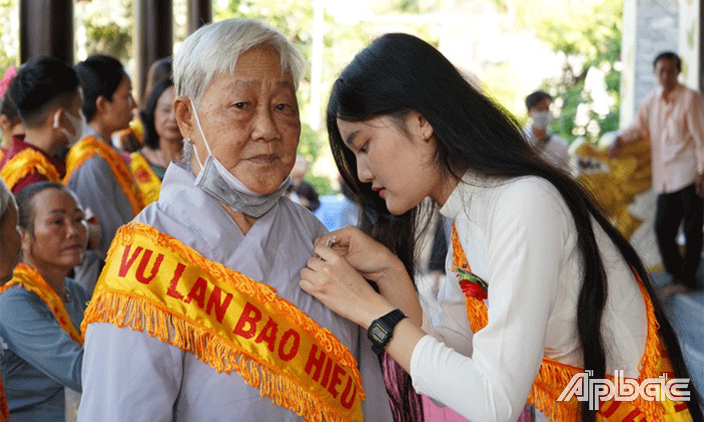 Tại nhiều chùa trên địa bàn tỉnh Tiền Giang, mùa Vu lan thường diễn ra từ đầu tháng 7 đến ngày rằm tháng 7, tùy theo điều kiện của mỗi nơi có thể tổ chức thời gian cho phù hợp. Nhân mùa Vu lan, tại các chùa dành thời gian để nhắc lại ý nghĩa đích thực của việc báo hiếu, hàm ý sâu xa của nghi thức cài hoa hồng; nhắc nhớ mỗi người luôn nhớ niệm bốn trọng ân, giữ tâm thiện lương, thực hành tinh thần đoàn kết, đùm bọc, thương yêu giúp đỡ lẫn nhau trong cuộc sống, đó chính là nghĩa cử cao đẹp của việc báo ân, báo hiếu đến thầy tổ và hai đấng sinh thành.