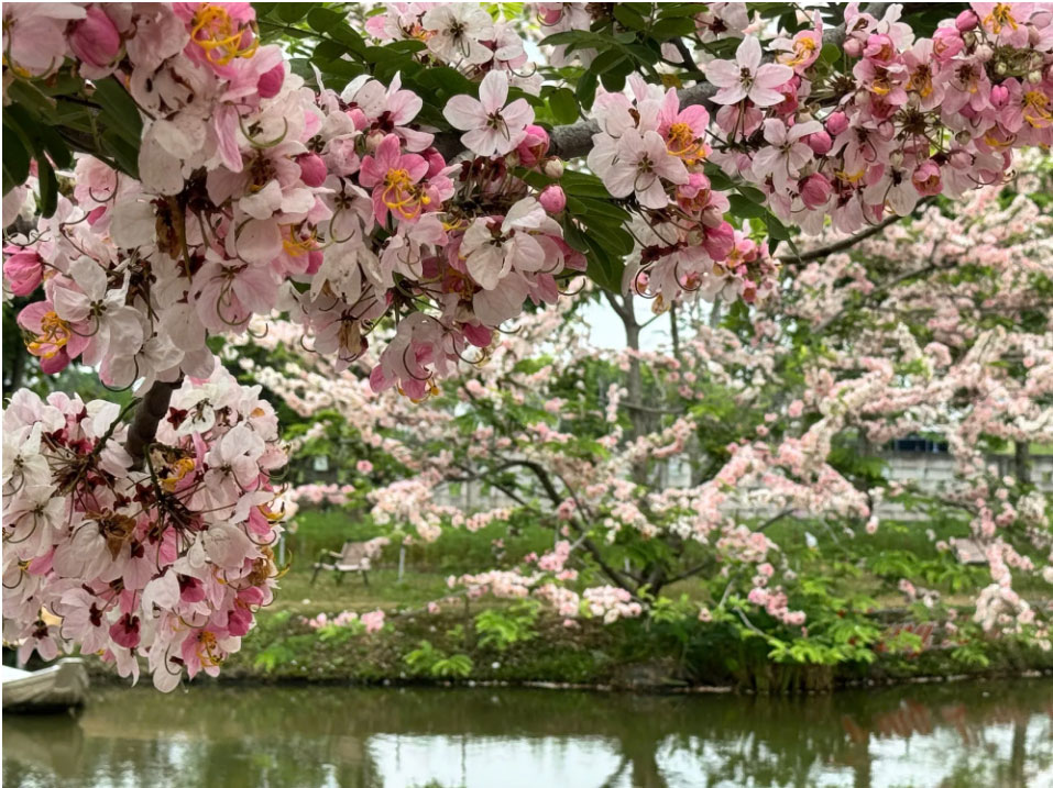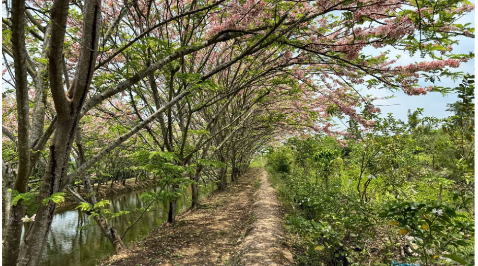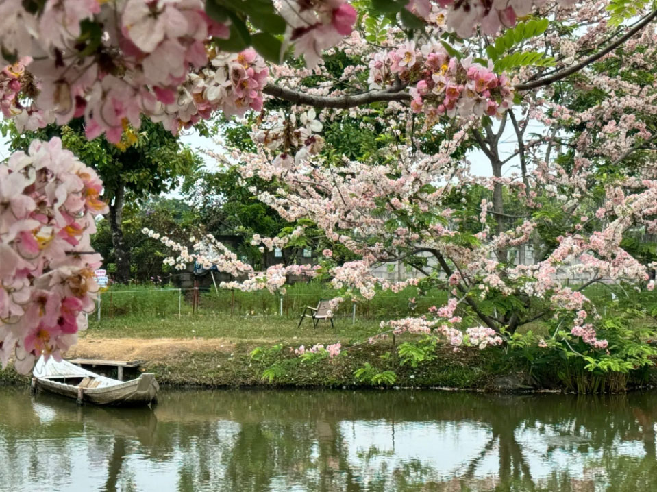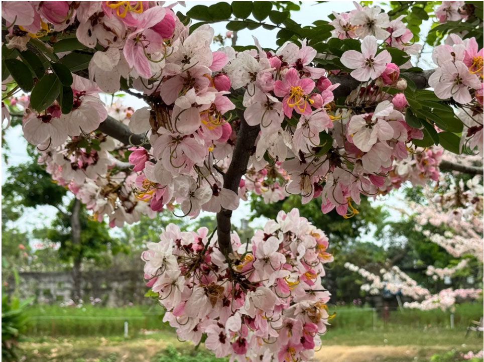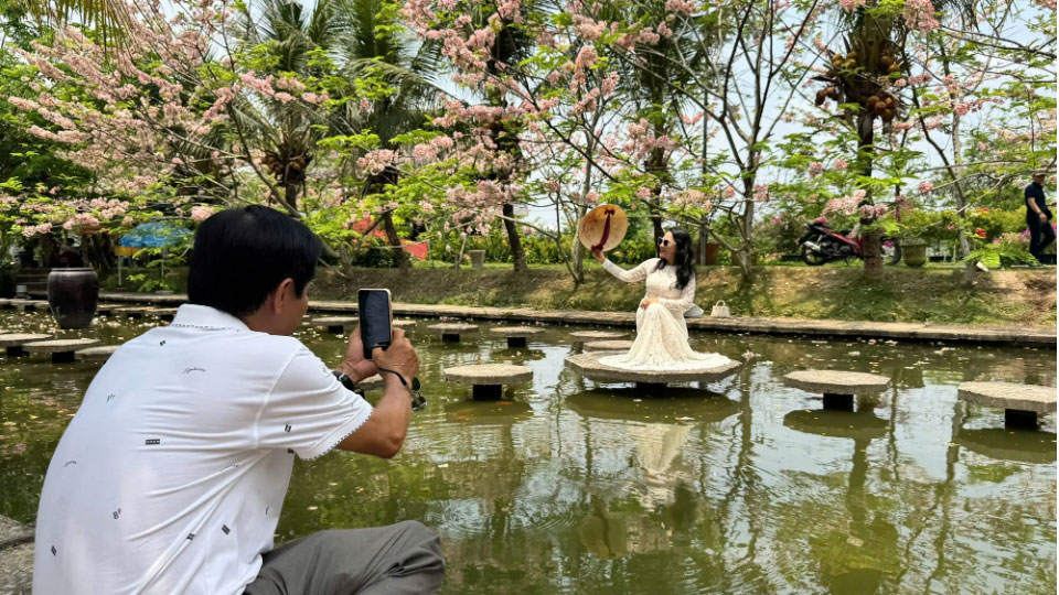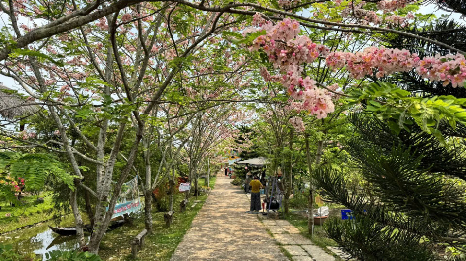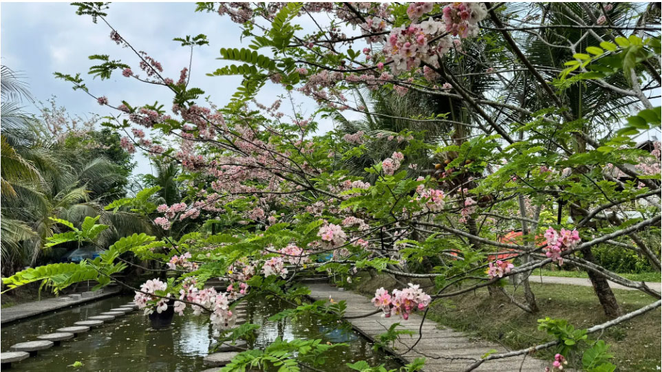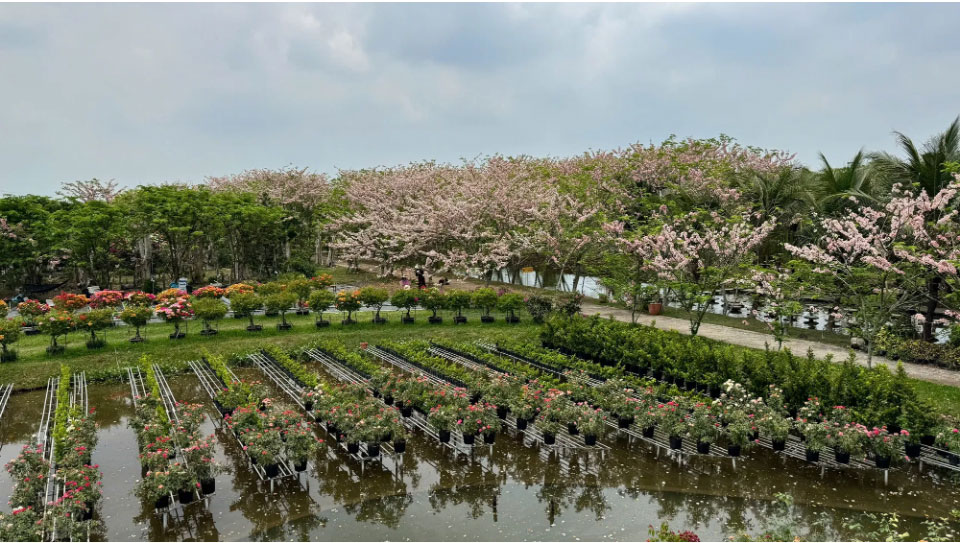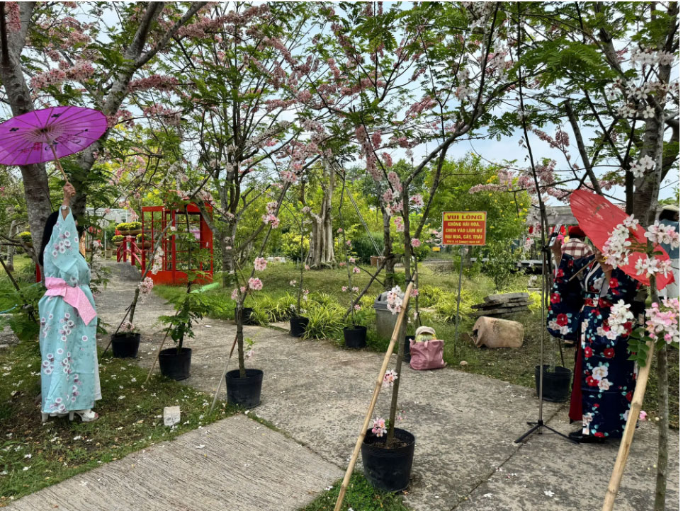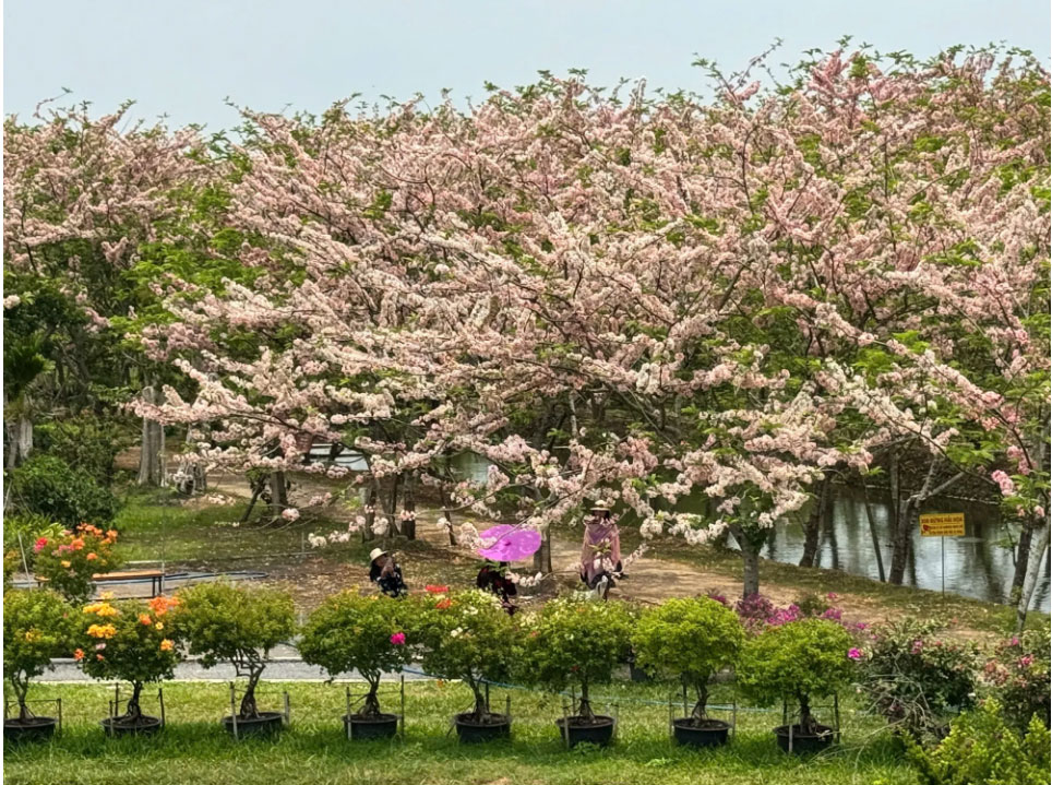 Giữa nắng vàng rực rỡ, một vườn hoa anh đào với dải màu hồng bắt mắt vừa xuất hiện tại làng hoa Sa Đéc (Đồng Tháp) đã trở thành điểm đến “gây bão”.