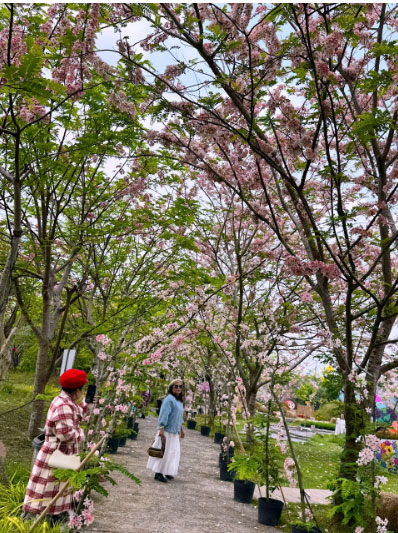 Chị Diệp Anh, một du khách từ TPHCM, thích thú chia sẻ: "Tôi thực sự ngỡ ngàng bởi vườn anh đào quá rộng, hoa anh đào đồng loạt khoe sắc thắm cả một vùng. Cứ ngỡ phải ra phía Bắc hay lên cao nguyên mới thấy được cảnh này, không ngờ giữa cái nắng của Sa Đéc, hoa anh đào lại nở rực rỡ và đậm màu đến thế.