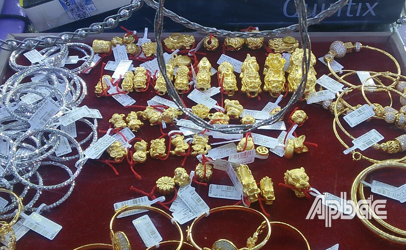 Tại Công ty TNHH Hồng Phúc (đường Lê Lợi, TP. Mỹ Tho), ngày vía Thần tài năm nay, công ty đưa ra khoảng 50 lượng vàng. Trong đó, có một số sản phẩm mới như tượng ông Thần tài, tượng vàng hình con chuột, trang sức phong thủy, đồng tiền phước, lộc, thọ, nhẫn 24k…