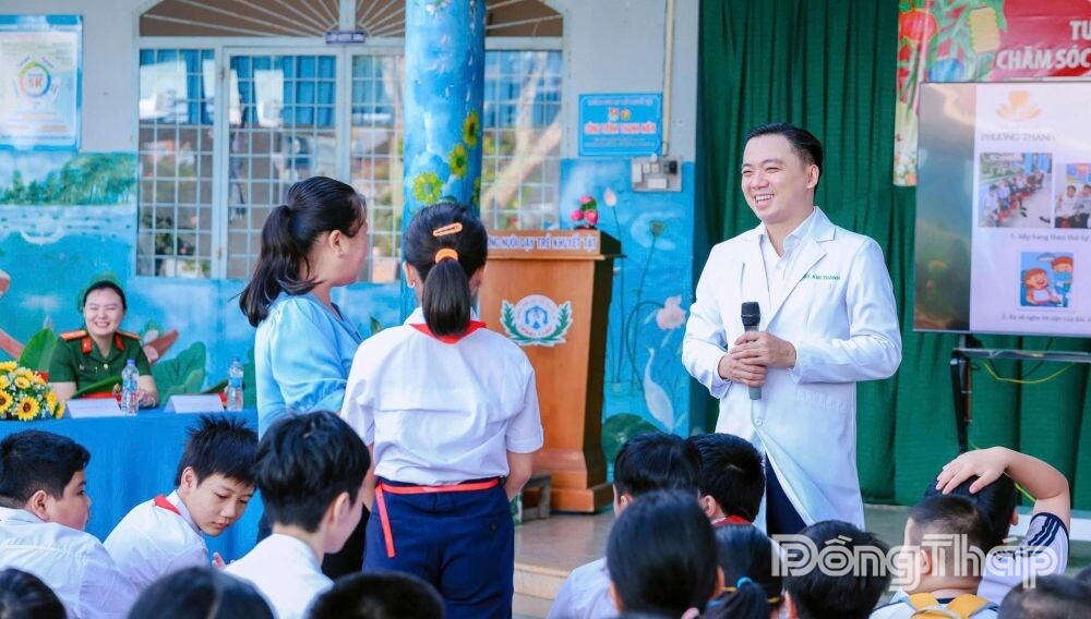 Câu chuyện xúc động khác về lòng nhân ái của bác sĩ Thành tại Trường Nuôi dạy trẻ khuyết tật Đồng Tháp (phường Sa Đéc). Từ năm 2018, anh “bén duyên” với những đứa trẻ kém may mắn nơi đây.