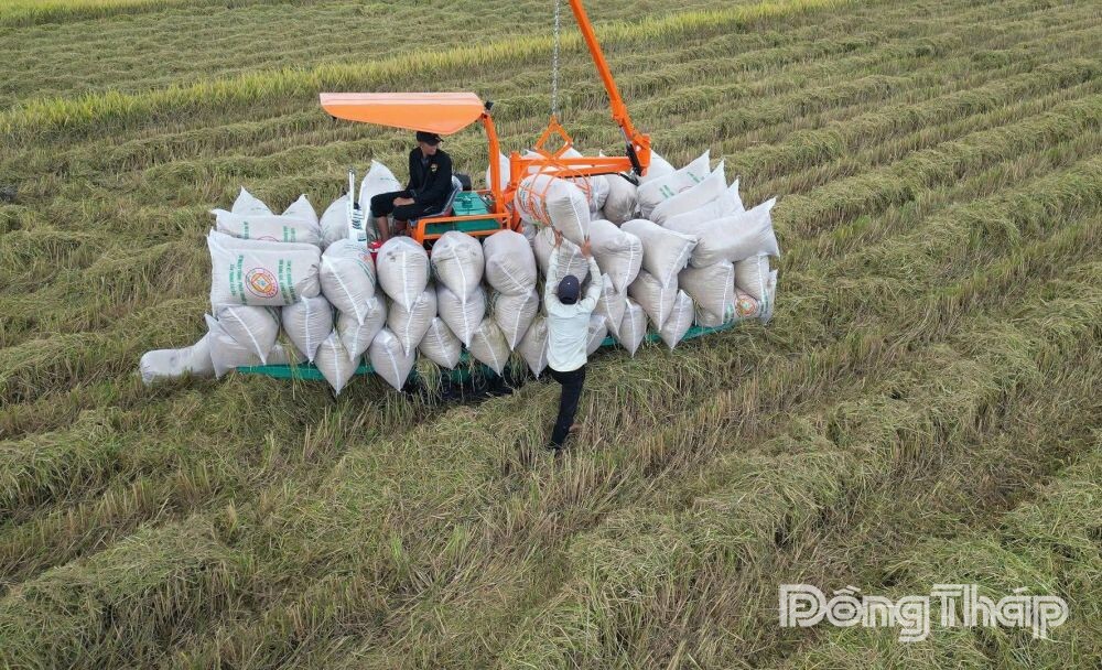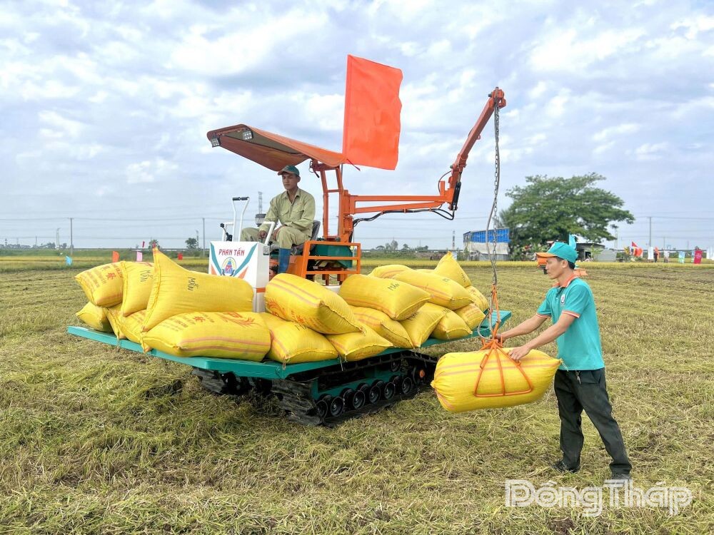 Ông Võ Trung Lập, Phó Giám đốc Công ty TNHH MTV Cơ khí Nông nghiệp Phan Tấn chia sẻ: “Trước đây, để mang bao lúa từ đồng ra điểm tập kết, chủ ruộng phải thuê 3 - 5 nhân công khỏe mạnh. Hiện nay, lao động trẻ khan hiếm, chúng tôi chế tạo cánh tay gắp bao lúa vận hành bằng cơ thủy lực, xoay 360 độ để thay thế sức người”