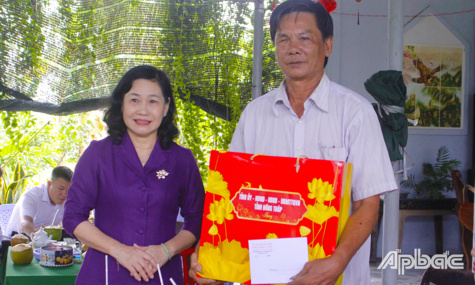 Đồng chí Châu Thị Mỹ Phương thăm, tặng quà gia đình chính sách tại xã An Thạnh Thủy