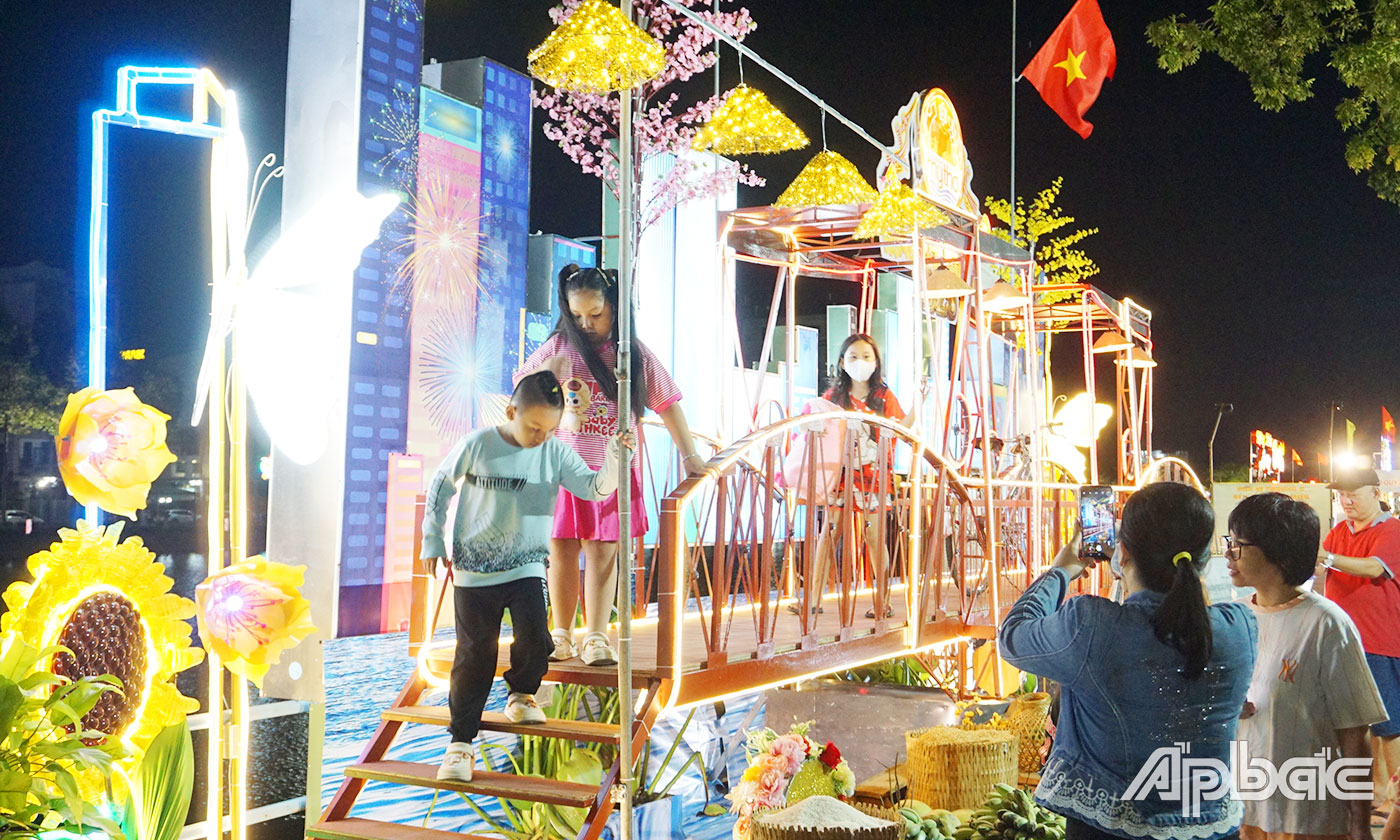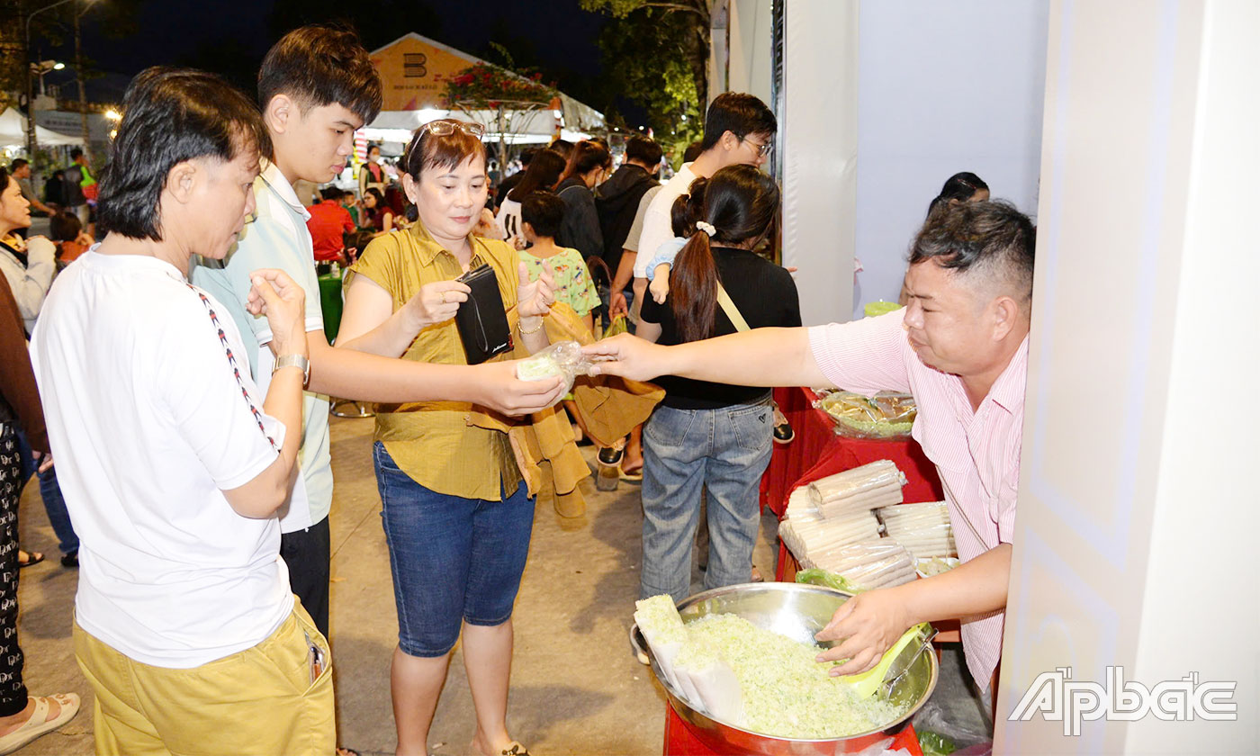 | Lễ hội Mỹ Tho còn có nhiều gian hàng trưng bày, bán các sản phẩm đặc trưng của các địa phương thu hút người dân đến tham quan, mua sắm. |