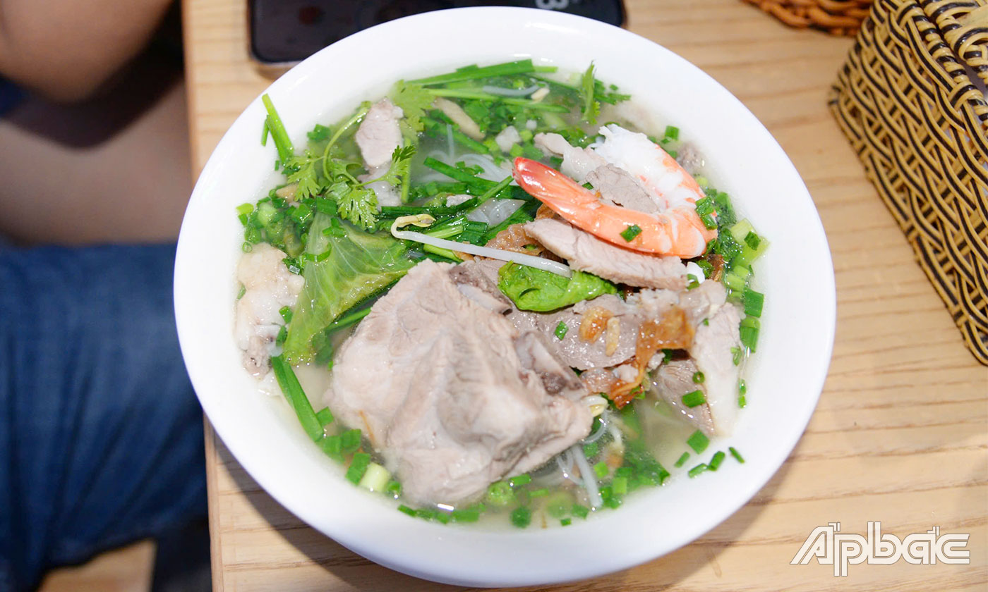 | Du khách thưởng thức món hủ tiếu Mỹ Tho |