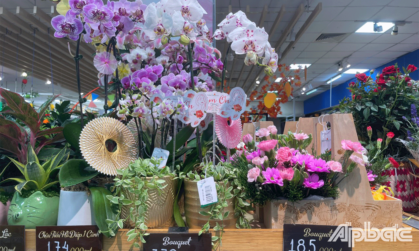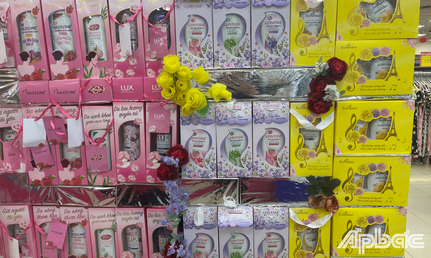 Để giúp khách hàng có thể dễ dàng mua được món quà ý nghĩa, thiết thực tặng phụ nữ, tại siêu thị Co.opMart Mỹ Tho (tỉnh Tiền Giang) đã bày bán hộp quà hóa phẩm gói sẵn, giá từ 60.000 đồng đến 300.000 đồng/hộp, gồm các loại sữa tắm, dầu gội dành cho chị em phụ nữ. Siêu thị còn có các loại hoa tươi, giỏ hoa tươi mừng ngày 20-10, đa dạng màu sắc, giá dao động từ 50.000 đồng đến 350.000 đồng/giỏ tùy loại.