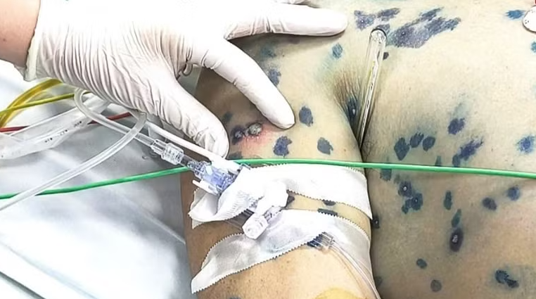 Một trong những ca bệnh điển hình đang được điều trị tích cực là anh Sầm Văn T. (39 tuổi, trú tại Lạng Sơn). Bệnh nhân nhập viện trong tình trạng sốc nhiễm khuẩn, nhiễm trùng ổ bụng sau phẫu thuật tắc ruột trên nền bệnh thủy đậu diễn tiến nặng.
