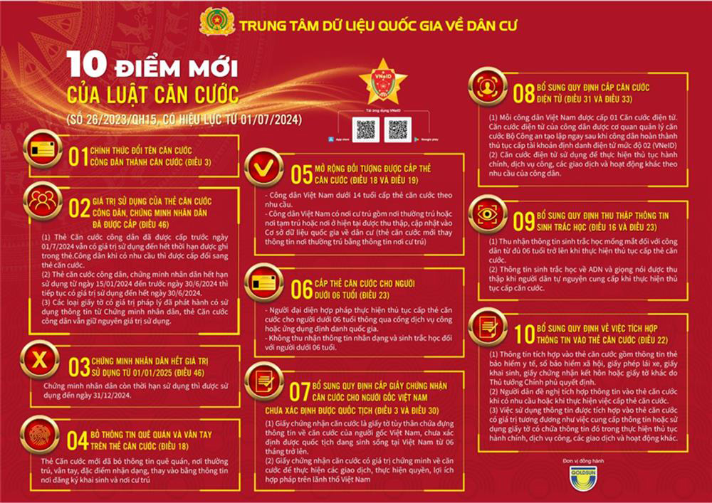 Theo đó, 10 điểm mới của Luật Căn cước có hiệu lực từ ngày 01/7/2024 gồm những nội dung sau: