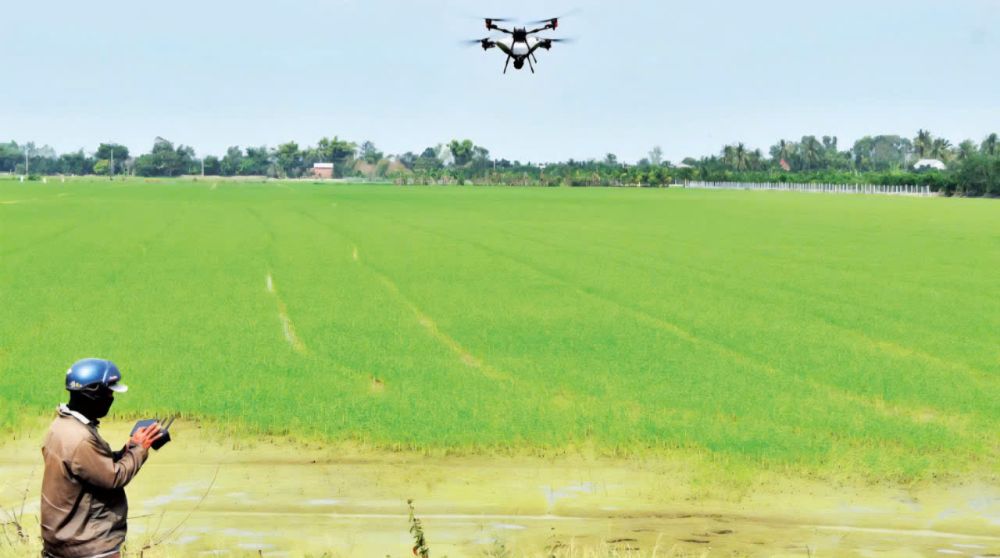 Ông Trần Văn Cảnh, thường trú ở xã Hội Cư, tỉnh Đồng Tháp canh tác 2,5 ha lúa ở xã Mỹ Thành, tỉnh Đồng Tháp. Đứng nhìn công nhân điều khiển thiết bị bay không người lái (drone) phun phân bón cho ruộng lúa của mình, ông Cảnh cho biết: “Vài năm trở lại đây, máy móc và công nghệ dần thay sức người trong canh tác nông nghiệp, nông dân trồng lúa không còn vất vả như trước. Từ làm đất, xuống giống, rải phân, phun thuốc, thu hoạch và vận chuyển lúa đều có máy móc”.
