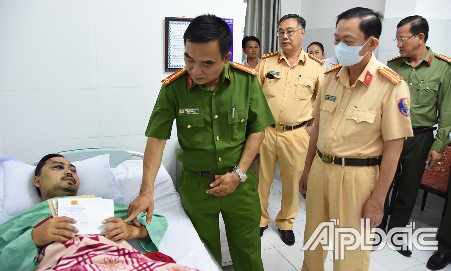 Ngày 4-5, Đại tá Nguyễn Việt Hùng, Phó Giám đốc Công an tỉnh, đến Bệnh viện Chợ Rẫy và Bệnh viện Chấn thương chỉnh hình, TP. Hồ Chí Minh thăm 2 cán bộ Phòng Cảnh sát giao thông Công an tỉnh bị thương khi thi hành nhiệm vụ.