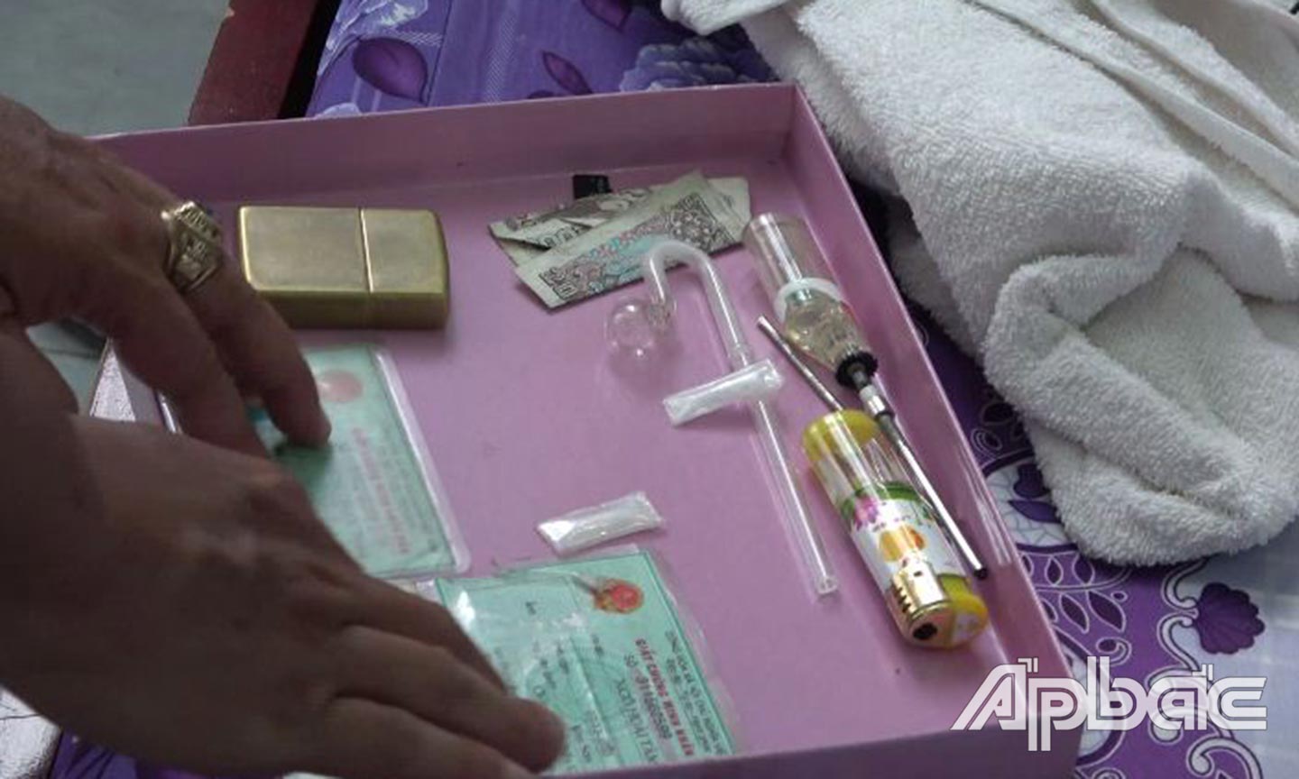 Tại hiện trường, lực lượng Công an thu giữ 2 bịch ma túy đá, các dụng cụ để sử dụng ma túy, 1 cái búa, 1 cái dao... Qua kiểm tra, cả 4 đối tượng đều dương tính với ma túy.