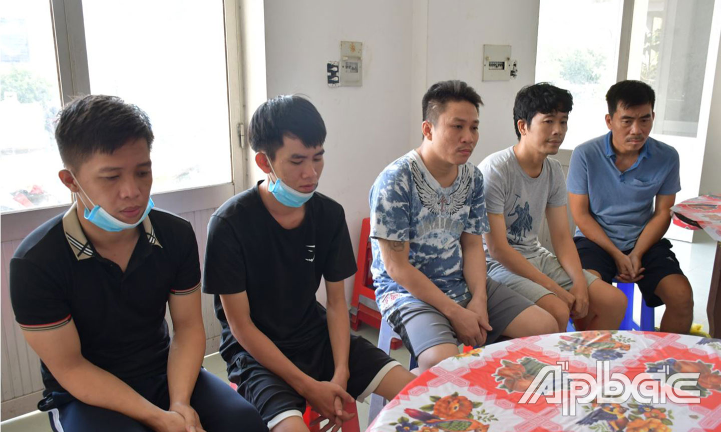 Theo Công an, 5 bị can bị bắt vào tối 25-6, sau khi bị lực lượng Cảnh sát hình sự - Công an tỉnh phối hợp Công an huyện Cái Bè bắt quả tang 14 đối tượng đang lắc tài xỉu ăn thua bằng tiền tại hộ của bà Nguyễn Thị Của (sinh năm 1968, ngụ khu phố 4, thị trấn Cái Bè).