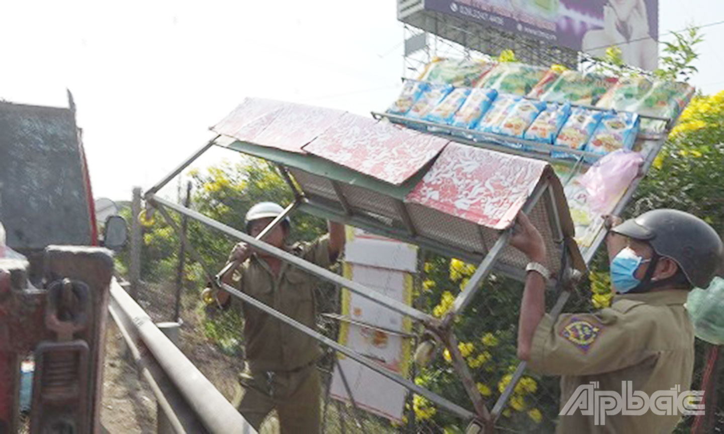 | Kiểm tra xử lý mua bán lấn chiếm hành lang ATGT khu vực cầu Mỹ Thuận. |