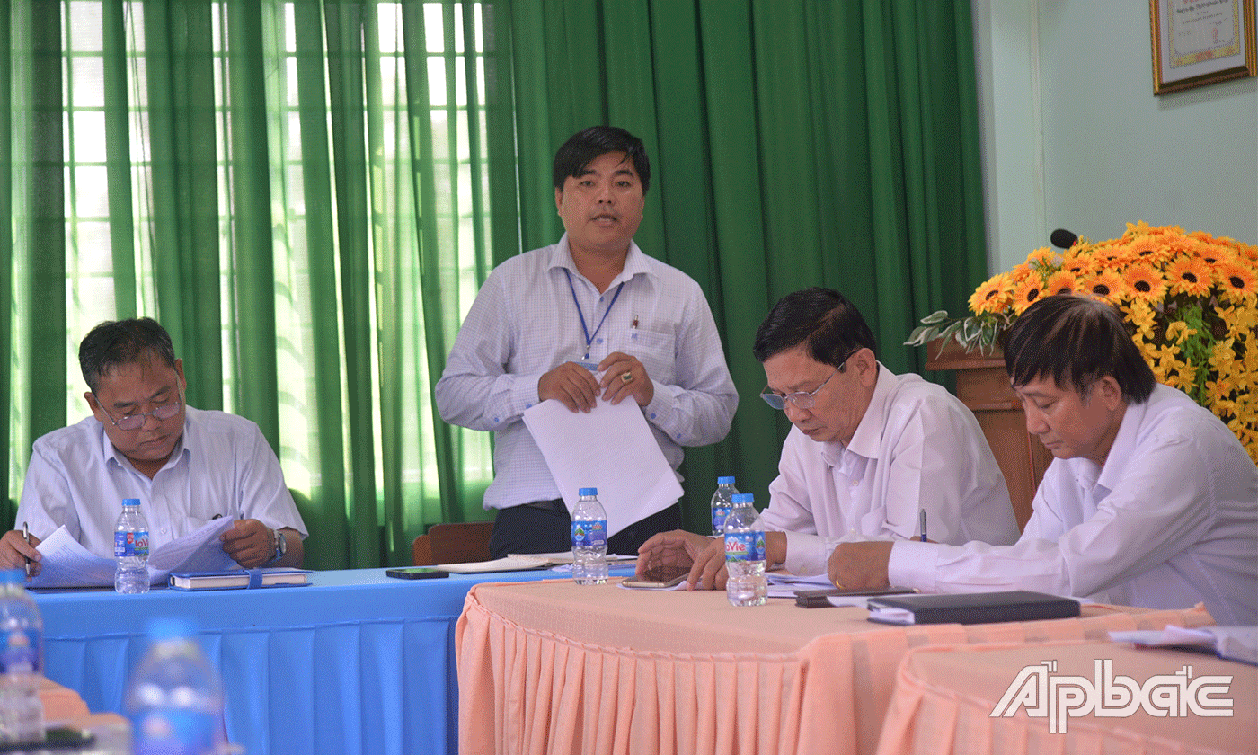 | Đoàn giám sát làm việc tại huyện Chợ Gạo. |