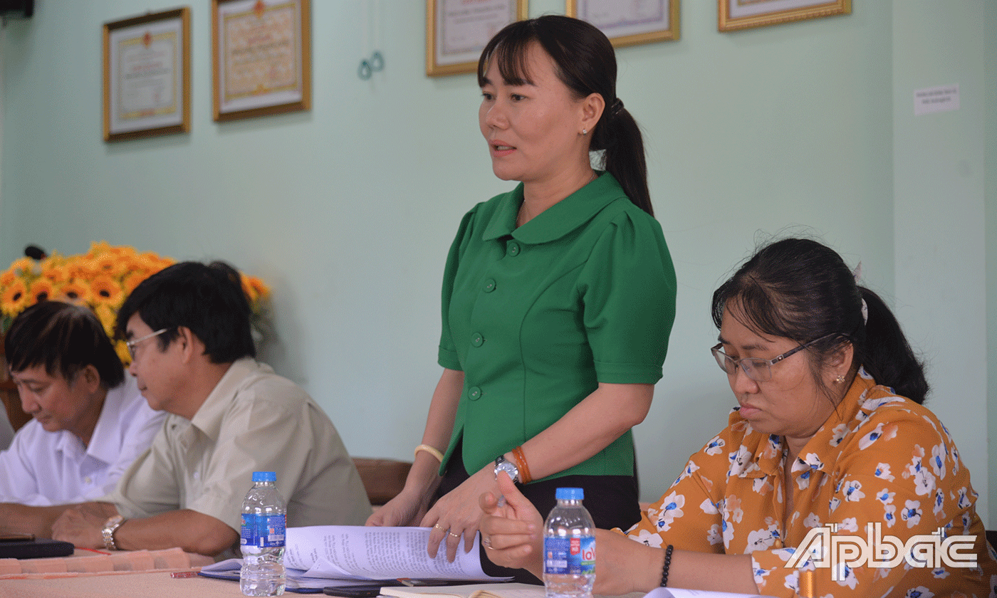 | Thành viên Ban Vì sự tiến bộ phụ nữ huyện Chợ Gạo phát biểu tại buổi giám sát. |