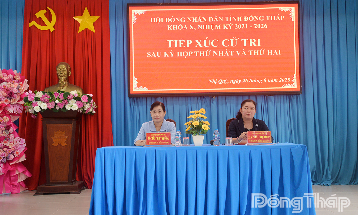 (ĐTO) Chiều ngày 26-8, đồng chí Châu Thị Mỹ Phương, Phó Bí thư Tỉnh ủy, Chủ tịch HĐND tỉnh Đồng Tháp tiếp xúc gần 200 cử tri phường Nhị Quý sau Kỳ họp thứ nhất và Kỳ họp thứ hai HĐND tỉnh Đồng Tháp khóa X, nhiệm kỳ 2021-2026.
