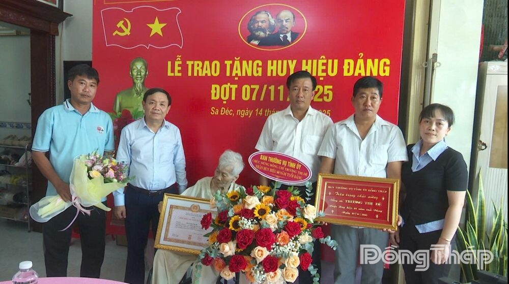 Chiều 14-11, tại phường Sa Đéc, đồng chí Phan Văn Thắng – Phó Bí thư Tỉnh ủy, Chủ tịch Ủy ban Mặt trận Tổ quốc Việt Nam tỉnh Đồng Tháp đã đến trao huy hiệu 60 năm tuổi Đảng cho đảng viên Trương Thị Đệ, sinh năm 1941, sinh hoạt tại Chi bộ khóm Phú Mỹ, Đảng bộ phường Sa Đéc. Cùng dự có ông Nguyễn Phước Thiện – Tỉnh ủy viên, Bí thư Đảng ủy, Chủ tịch Hội đồng nhân dân phường Sa Đéc.