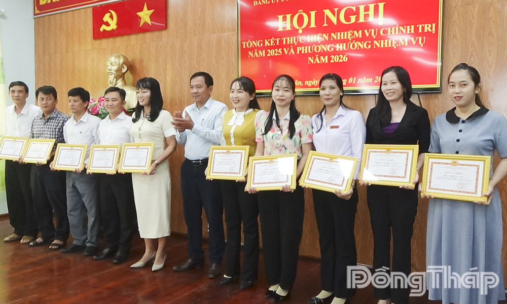Dịp này, Ban Thường vụ Đảng ủy phường Bình Xuân đã quyết định khen thưởng 1 tập thể và 15 đảng viên có thành tích “Hoàn thành xuất sắc nhiệm vụ” năm 2025.