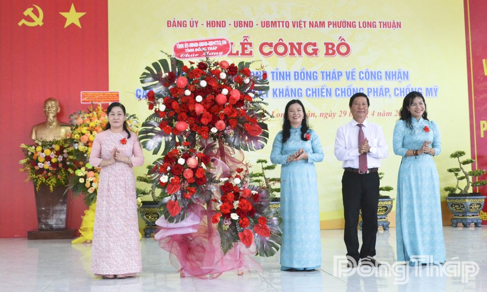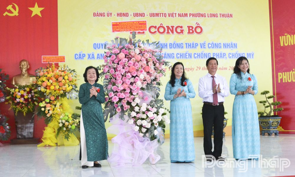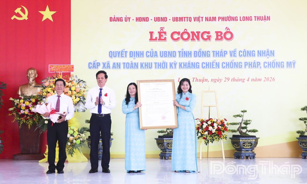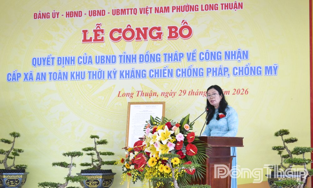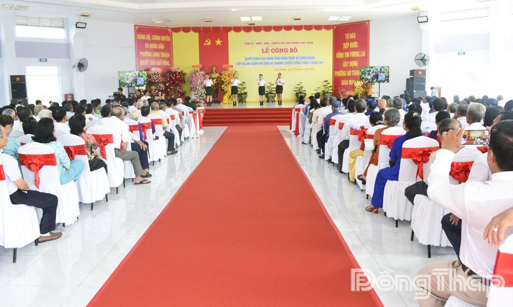 Tại buổi lễ, lãnh đạo Sở Nội vụ công bố quyết định của UBND tỉnh Đồng Tháp về việc công nhận phường Long Thuận là An toàn khu. Đại diện lãnh đạo UBND tỉnh đã trao quyết định và tặng hoa chúc mừng Đảng bộ, chính quyền và Nhân dân địa phương.