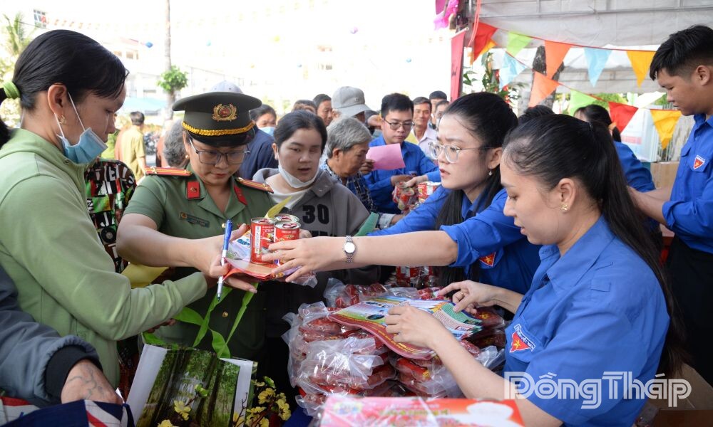 Với 700 phần quà được trao tặng thông qua mô hình "Chợ Tết 0 đồng", chương trình còn tổ chức nhiều hoạt động thiết thực như: Ăn uống tự chọn miễn phí, vui chơi, chụp ảnh, cập nhật kiến thức phòng, chống tội phạm.