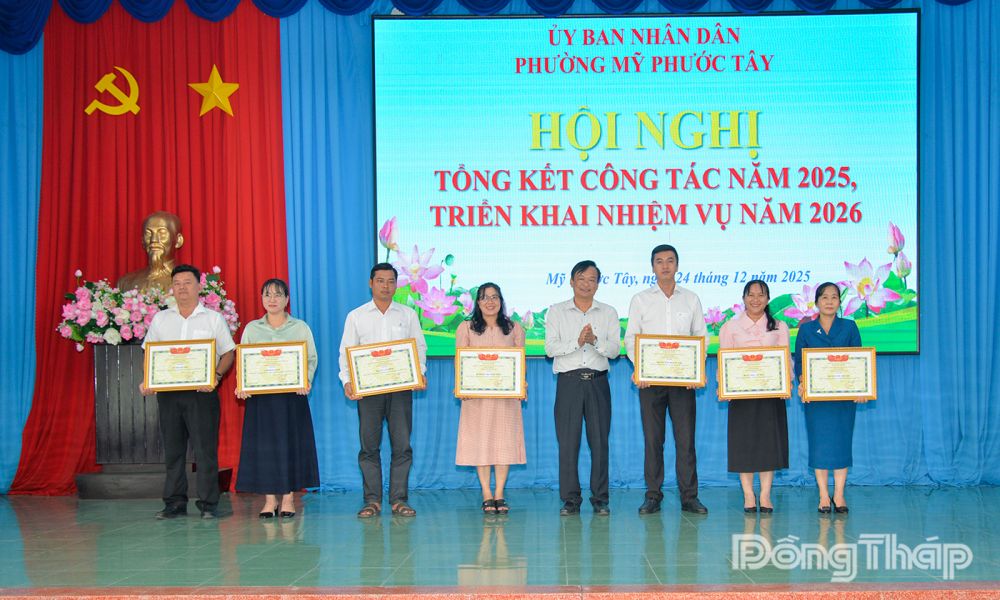Dịp này, phường Mỹ Phước Tây khen thưởng danh hiệu “Chiến sĩ thi đua cơ sở” năm 2025 và cá nhân đạt thành tích hoàn thành tốt các phong trào thi đua năm 2025 trên địa bàn phường Mỹ Phước Tây.
