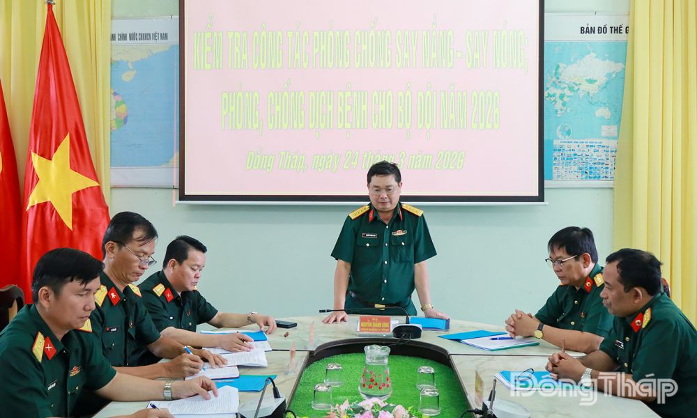 (ĐTO) Ngày 24-3, Đoàn công tác Cục Hậu cần - Kỹ thuật (Quân khu 9) do Đại tá Nguyễn Thành Long, Phó Giám đốc Bệnh viện Quân y 120 làm Trưởng đoàn đã kiểm tra công tác phòng, chống say nắng - say nóng; phòng, chống dịch bệnh cho bộ đội năm 2026 tại Trung đoàn 924, Bộ Chỉ huy Quân sự (CHQS) tỉnh Đồng Tháp).