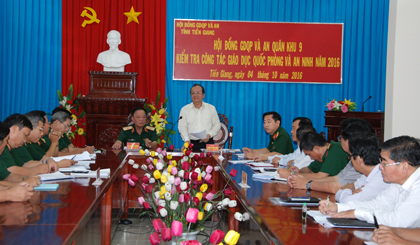 Chiều 4-10, Hội đồng giáo dục quốc phòng và an ninh Quân khu 9 do Thiếu tướng Lê Minh Hiền, Phó Tham mưu trưởng Quân khu 9 làm trưởng đoàn đã có buổi làm việc với Hội đồng giáo dục quốc phòng và an ninh tỉnh Tiền Giang về công tác giáo dục quốc phòng và an ninh năm 2016. Ông Trần Thanh Đức - Phó Chủ tịch UBND tỉnh cùng làm việc với đoàn.