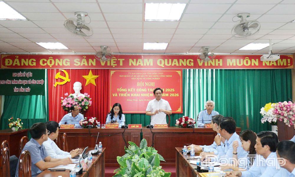 (ĐTO) Chiều 30-12, Ban Quản lý dự án đầu tư xây dựng công trình dân dụng và công nghiệp tỉnh Đồng Tháp tổ chức tại Hội nghị tổng kết công tác năm 2025 và triển khai nhiệm vụ năm 2026. Tham dự có Phó Chủ tịch Thường trực UBND tỉnh Đồng Tháp Trần Văn Dũng.