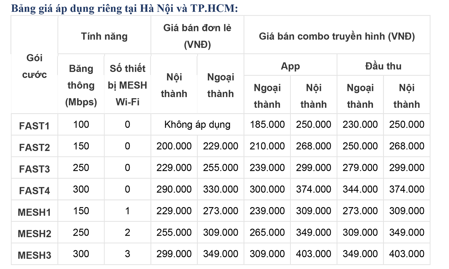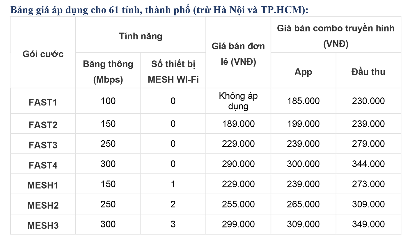 Sau đây mời bạn xem bảng giá cước chi tiết lắp đặt wifi Viettel: