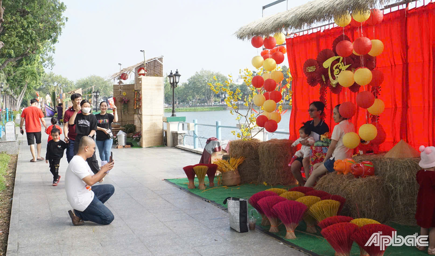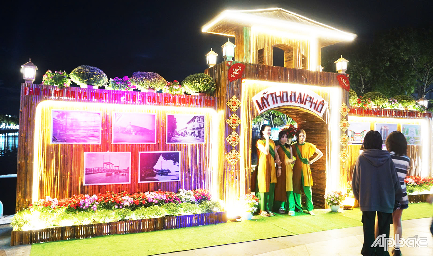 | Các tiểu cảnh tái hiện Mỹ Tho xưa và nay thu hút khách đến thưởng ngoạn và chụp ảnh lưu niệm trong không gian Mỹ Tho. |