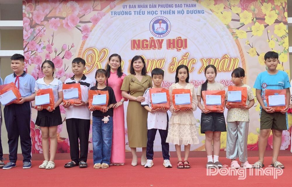 Dịp này, Ban Giám hiệu Trường Tiểu học Thiên Hộ Dương đã tặng 120 phần quà tết (trị giá 1 triệu đồng/phần) cho các em học sinh của trường có hoàn cảnh khó khăn, vượt khó học tốt. Đây là nguồn động viên thiết thực, giúp các em thêm động lực vươn lên trong học tập và cuộc sống.
