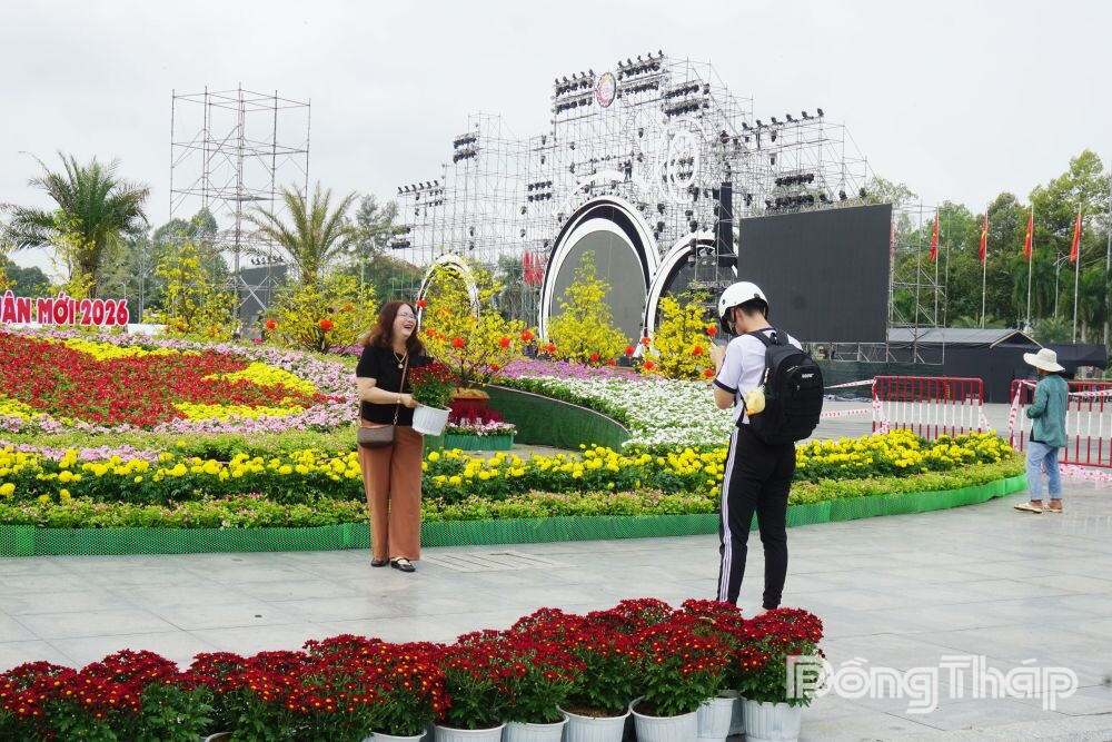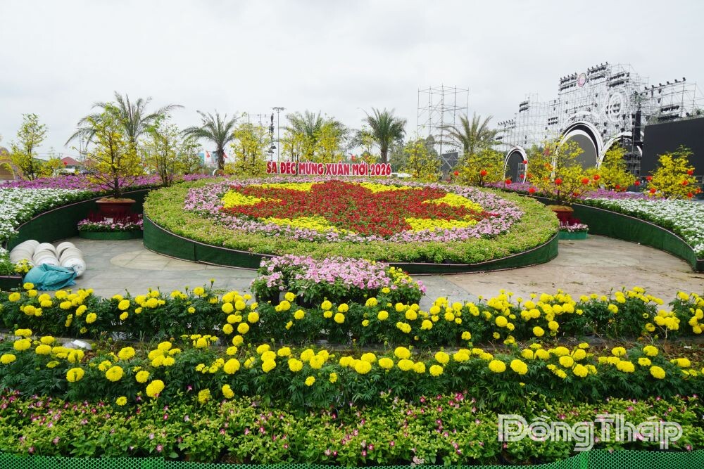 Tại khu vực Quảng trường, hàng ngàn chậu hoa tươi từ Làng hoa Sa Đéc được công nhân khẩn trương sắp đặt, tạo nên những đại cảnh, tiểu cảnh lung linh. Không khí chuẩn bị đang diễn ra náo nức, tất cả sẵn sàng mang đến một không gian lễ hội chỉn chu, ấn tượng, chào đón du khách đến tham quan từ ngày 27-12-2025 đến ngày 4-1-2026.