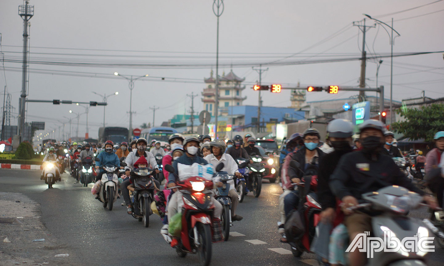 | Dòng người hối hả về quê ăn tết, đoạn TX. Cai Lậy. |