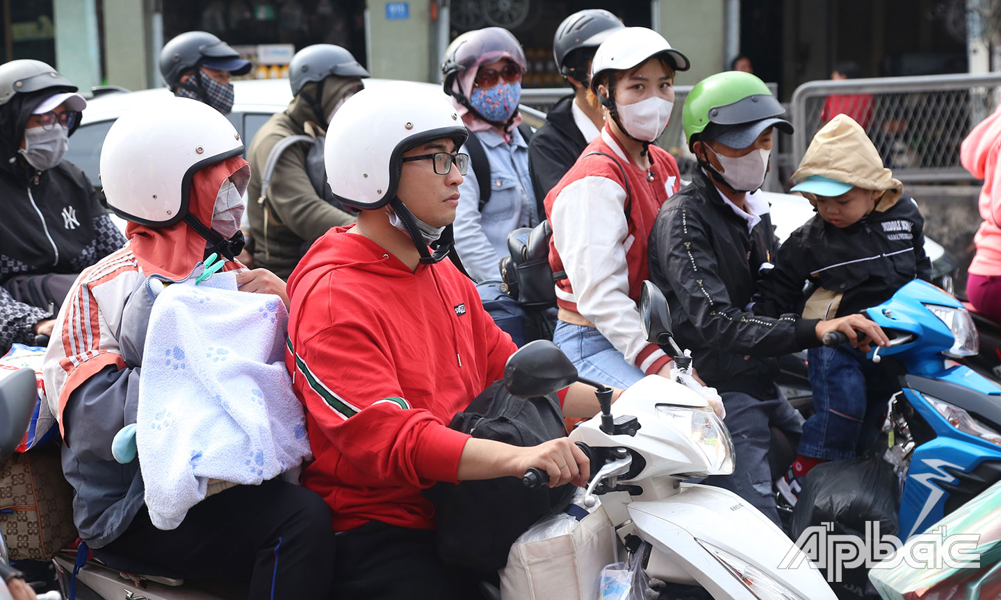 Theo ghi nhận của phóng viên, lượng phương tiện lưu thông tăng cao, đặc biệt là trên các tuyến Quốc lộ 1, 50, 60, cao tốc TP. Hồ Chí Minh - Trung Lương - Mỹ Thuận. Đông nhất vẫn là xe máy, từng dòng xe, dòng người tất bật, hối hả... về quê sum họp cùng gia đình sau một năm xa quê làm việc vất vả.
