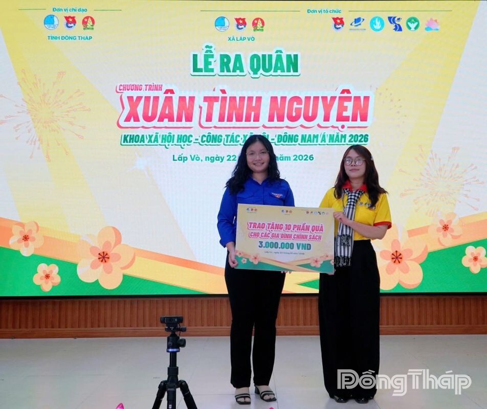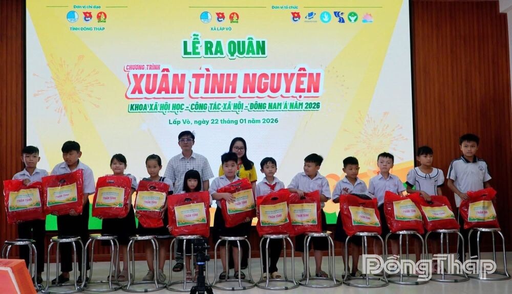 (ĐTO) Xã đoàn Lấp Vò, tỉnh Đồng Tháp vừa phối hợp cùng Đội hình tình nguyện Khoa Xã hội học - Công tác xã hội - Đông Nam Á (Trường Đại học Mở TP. Hồ Chí Minh) tổ chức Lễ ra quân Chương trình “Xuân tình nguyện năm 2026”.