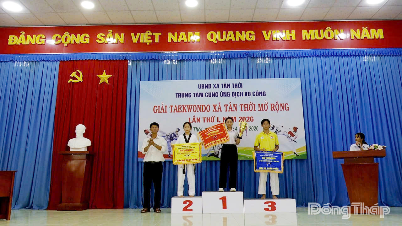(ĐTO) Ngày 26-4-2026, Trung tâm Cung ứng dịch vụ công xã Tân Thới, tỉnh Đồng Tháp tổ chức Lễ khai mạc Giải Taekwondo xã Tân Thới mở rộng lần I, năm 2026.