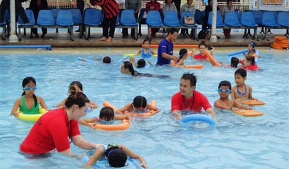 Trong thời gian từ ngày 7 đến 11-1-2013, mỗi buổi các em có 45 phút thực hành, do các tình nguyện viên và huấn luyện viên hướng dẫn các kỹ năng bơi cơ bản.