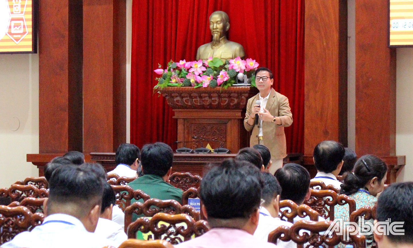 | TS.Bác sĩ Nguyễn Văn Dương, giám đốc Sở Y tế tỉnh Tiền Giang phát biểu tại hội nghị. |
