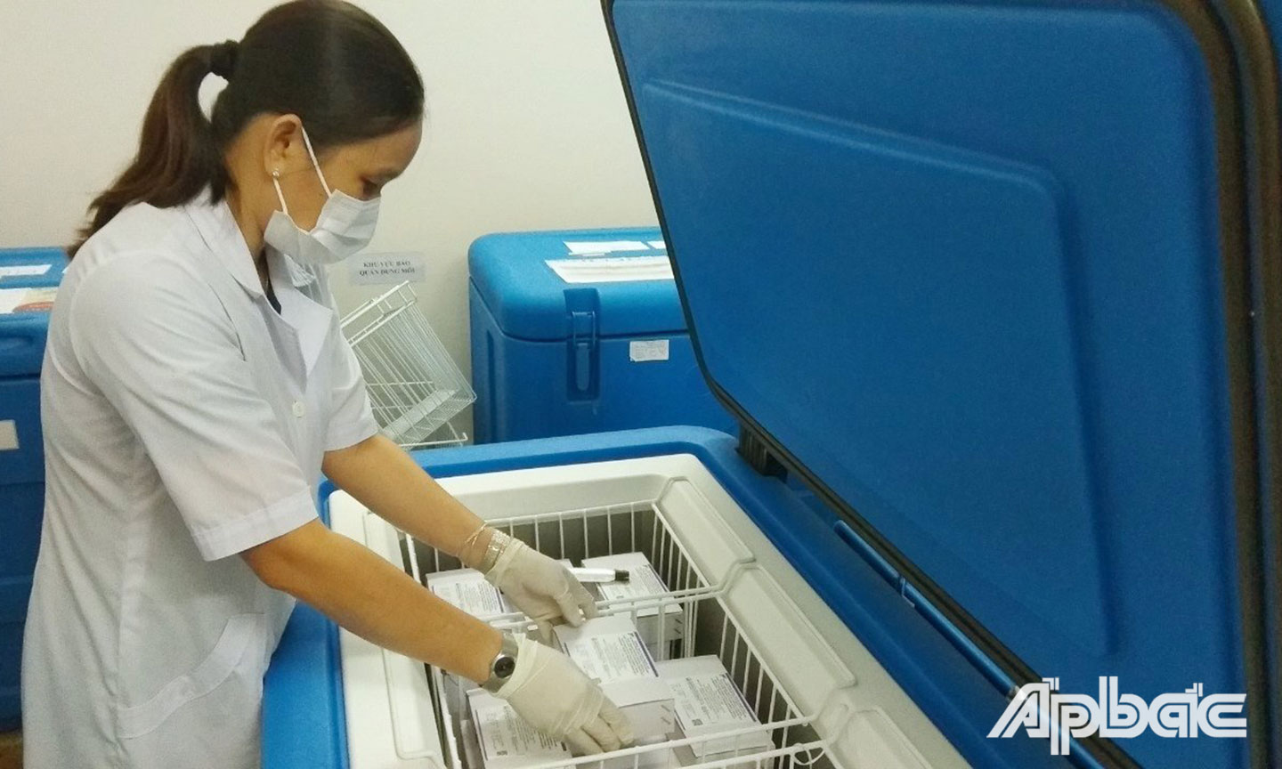 | Vắc xin SII tại CDC tỉnh Tiền Giang sẵn sàng phân phối cho các Trung tâm Y tế trên địa bàn tỉnh. |